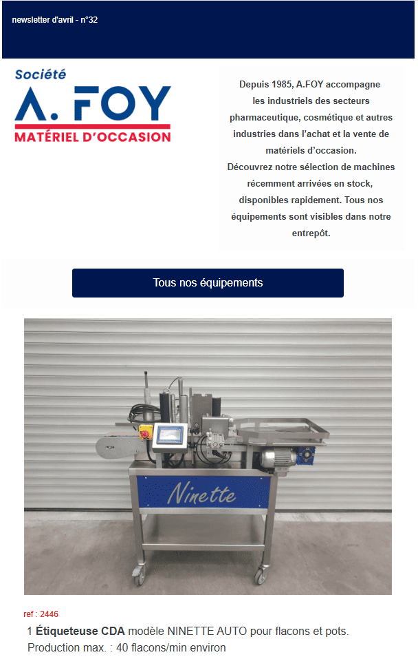 Achat et vente de matériel d’occasion pour l’industrie pharmaceutique, les compléments alimentaires, cosmétique et parfumerie.