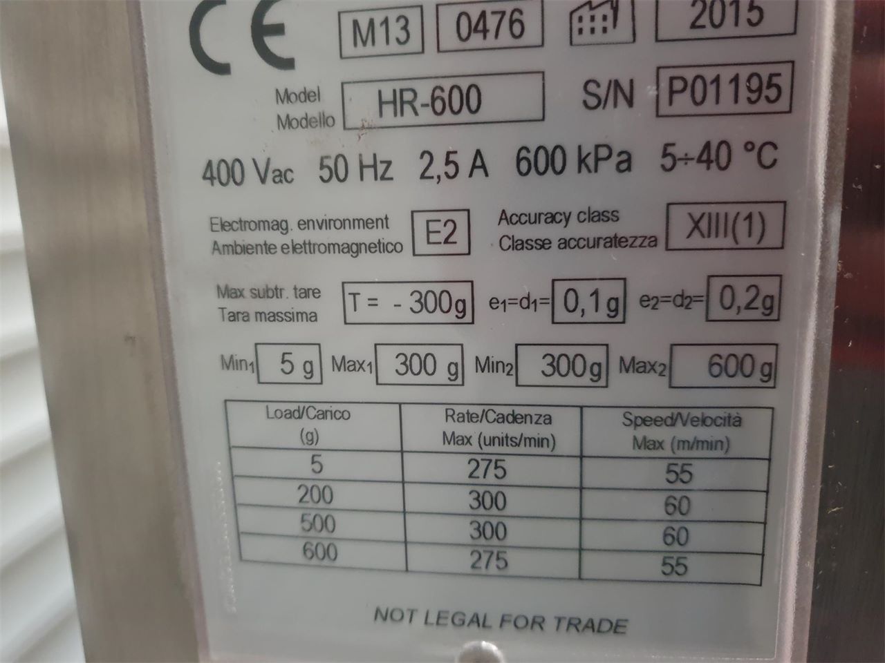Portée maxi 600 gr.