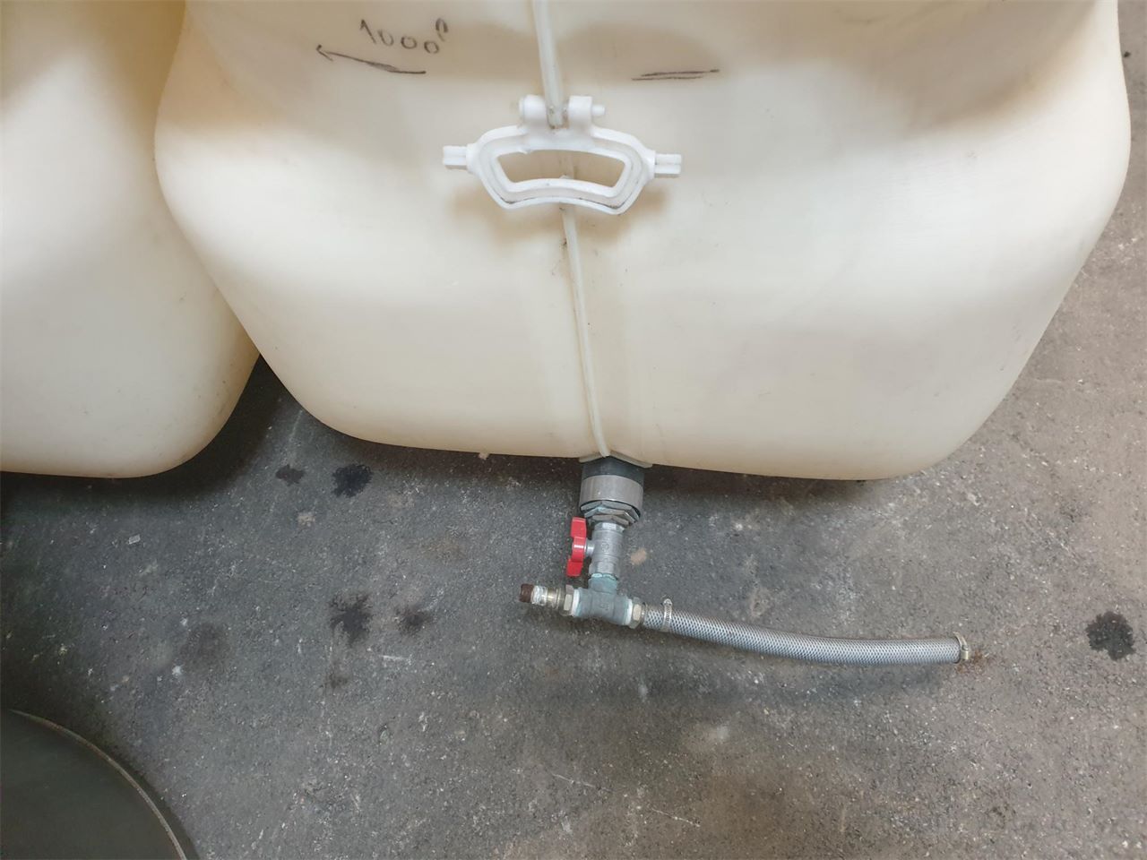 Vidange avec vanne en fond de réservoir.
